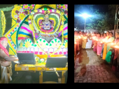 திருவிளக்கு வீதி உலா ஈரோடு வ உ சி பூங்காவில் தொடங்கி வழியாக கருங்கல்பாளையம் பெரிய மாரியம்மன் கோவிலில் வந்தடைந்தது இதில் ஏராளமான ஐயப்ப பக்தர்கள் தங்கள் குடும்பத்துடன் திருவிளக்கு பூஜையில் கலந்து கொண்டனர்.