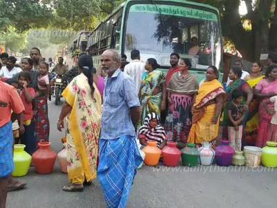 திருவண்ணாமலை அருகே குடிநீர் கேட்டு காலிகுடங்களுடன் பொதுமக்கள் சாலை மறியலில் ஈடுபட்டனர் .திருவண்ணாமலை அருகே நல்லவன்பாளையத்தில் அமைந்துள்ள இந்திரா நகர், காமராஜர் சாலை பகுதியில் 100-க்கு மேற்பட்ட குடும்பங்கள் உள்ளன. இங்கு கடந்த சில வாரங்களாக குடிநீர் வினியோகம் செய்யப்படவில்லை என்று கூறப்படுகிறது. இதனால் அவர்கள் அவதிப்பட்டு வந்தனர். இந்த நிலையில் நேற்று அங்குள்ள சாலையில் அவர்கள் காலி குடங்களுடன் திடீரென மறியலில் ஈடுபட்டனர். இதனால் அங்கு போக்குவரத்து பாதிப்பு ஏற்பட்டது. இதையடுத்து சம்பவ இடத்திற்கு திருவண்ணாமலை டவுன் போலீசார் மற்றும் அதிகாரிகள் வந்து பொதுமக்களிடம் பேச்சுவார்த்தை நடத்தினர். அப்போது பொதுமக்கள் கூறுகையில், எங்கள் பகுதியை தவிர்த்து சுற்றுவட்டார பகுதிகளில் குடிநீர் வினியோகம் செய்யப்படுகிறது. எங்களுக்கு வாரத்துக்கு ஒருமுறை மட்டுமே குடிநீர் வினியோகம் செய்யப்படுகிறது. இதனால் நாங்கள் மிகுந்த அவதி அடைந்து வருகிறோம். குடிநீர் குழாய் அமைத்தும் தண்ணீர் வினிியோகம் செய்யப்படவில்லை. இதுகுறித்து அதிகாரிகள் உடனடியாக நடவடிக்கை எடுத்து குடிநீர் வினியோகம் செய்ய வேண்டும் என்றனர். அதற்கு அதிகாரிகள் நடவடிக்கை எடுப்பதாக தெரிவித்தனர். அதைத்தொடர்ந்து அவர்கள் மறியலை கைவிட்டு கலைந்து சென்றனர். இதனால் அங்கு சிறிதுநேரம் போக்குவரத்து பாதிக்கப்பட்டது.